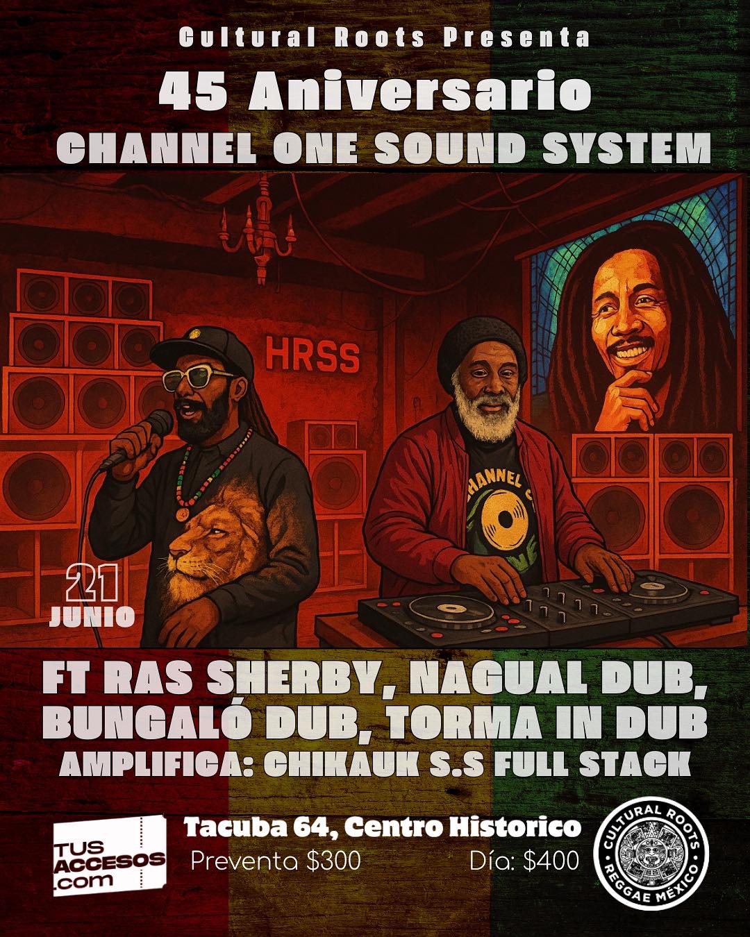 Celebra 45 años de historia del legendario Channel One Sound System directamente desde Reino Unido, uno de los sound systems más influyentes del reggae y dub a nivel mundial. Una noche imperdible para los amantes de la cultura sound system.